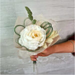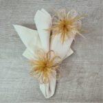Hermosos servilleteros de hechos de fibra de Abaca y pluma de pampa grass preservado en color verde.